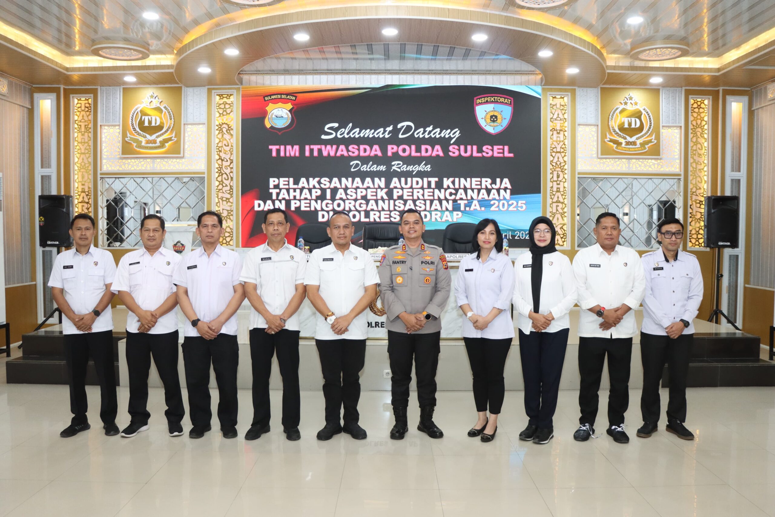 SIDRAP – Kapolres Sidrap AKBP Fantry Taherong, menerima kunjungan dari Tim Inspektorat Pengawasan Daerah (Itwasda) Polda Sulawesi Selatan dalam rangka Pelaksanaan Audit Kinerja Tahap I Tahun Anggaran 2025, yang meliputi aspek perencanaan dan pengorganisasian. Rabu (23/04/25)