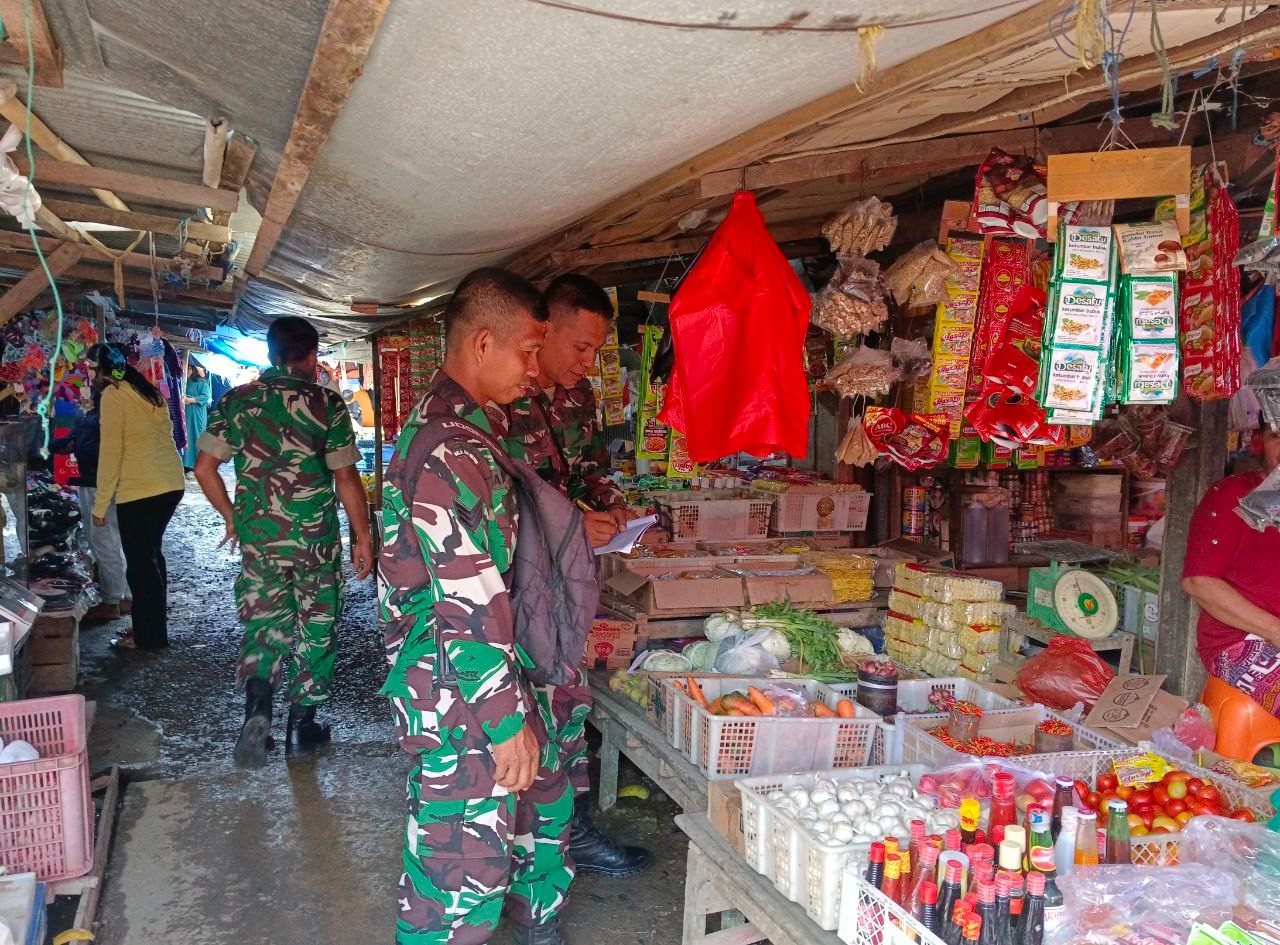 Dengan semangat pengabdian, Serka Anwar menyusuri kios demi kios, mencatat harga kebutuhan pokok yang menjadi perhatian masyarakat. Dari beras, ayam, ikan, hingga minyak goreng dan cabai, semuanya diperiksa dengan teliti.