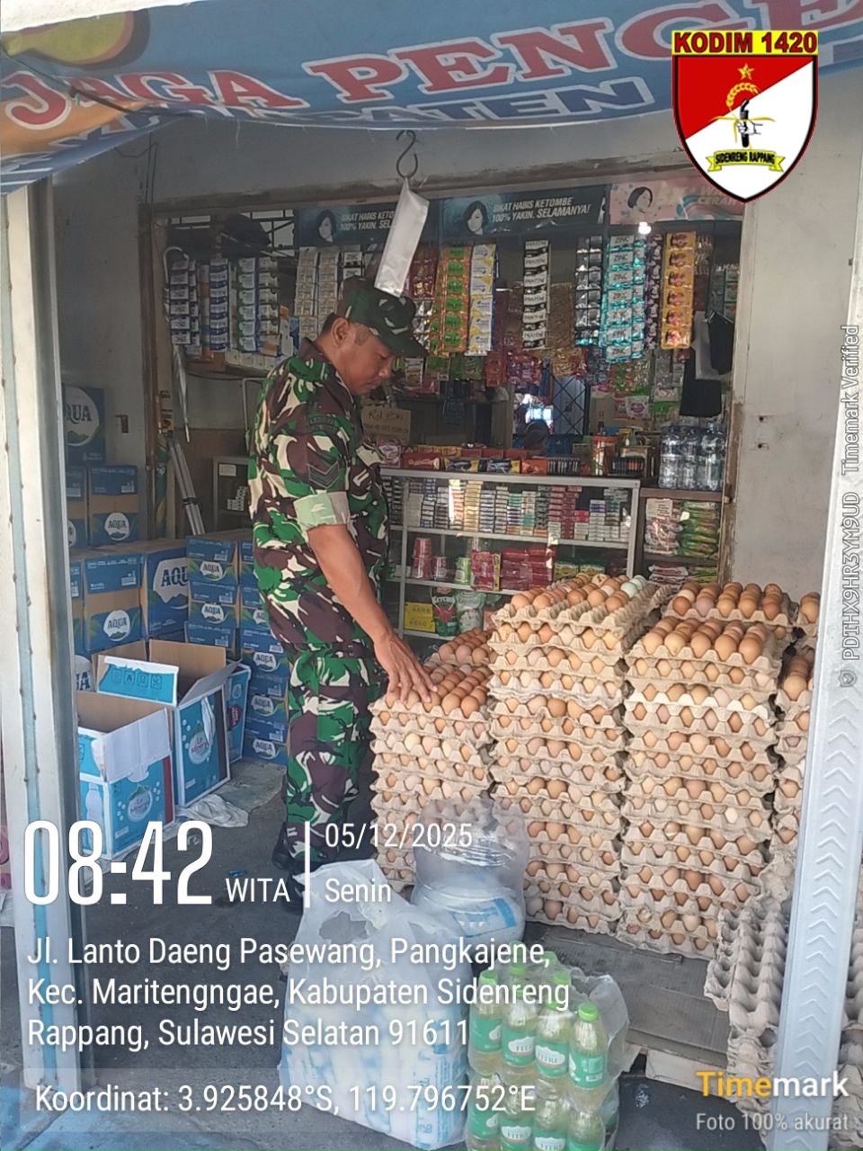 Sidrap, – Di tengah fluktuasi harga bahan pokok, kehadiran aparat TNI di pasar tradisional menjadi angin segar bagi warga. Senin pagi (12/5/2025), Sertu Suburhan Suwandi, Babinsa Kelurahan Pangkajene dari Koramil 1420-03/Maritengngae, terjun langsung ke Pasar Sentral Pangkajene untuk memantau harga dan stok sembako.