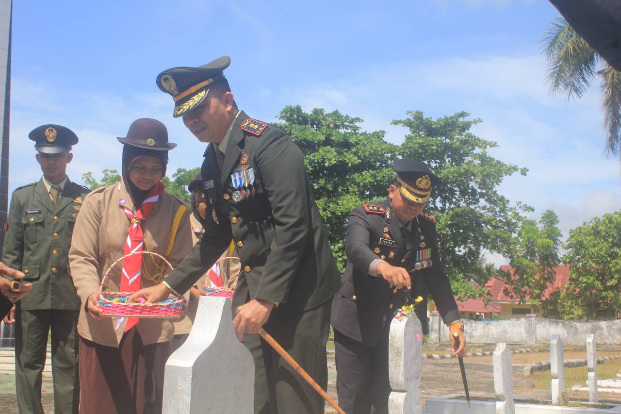 Sidrap, – Letkol Inf. Awaloeddin, S.I.P., Dandim 1420/Sidrap, memimpin Upacara Ziarah Nasional dalam rangka memperingati Hari Pahlawan ke-79 Tahun 2024 di Taman Makam Pahlawan (TMP) Mario, Kecamatan Kulo, Kabupaten Sidrap,11 November 2024.