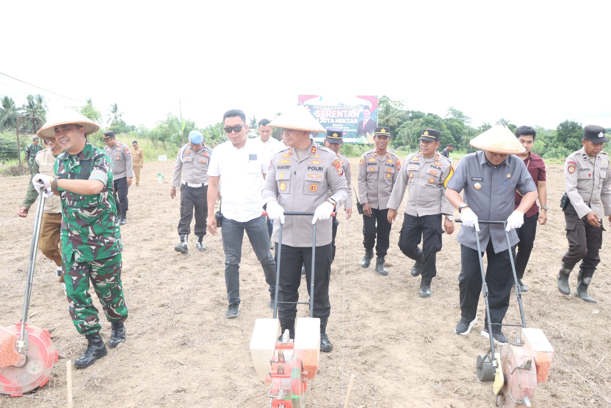 SIDRAP – Sebagai bagian dari upaya mendukung ketahanan pangan nasional, Kapolres Sidrap AKBP Fantry Taherong bersama jajaran Forum Koordinasi Pimpinan Daerah (Forkopimda) Kabupaten Sidrap, Petani dan Sektor Swasta melaksanakan penanaman jagung serentak satu juta hektar seluruh Indonesia