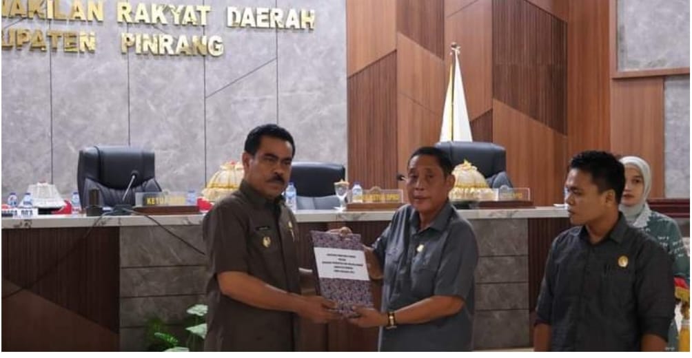 PinrangOnedaynews Rapat Paripurna Dewan Perwakilan Rakyat Daerah (DPRD) Kabupaten Pinrang dengan agenda penerimaan secara resmi dan penyampaian pandangan umum fraksi terhadap Rancangan Peraturan Daerah (Ranperda) tentang Anggaran Pendapatan Belanja Daerah (APBD) tahun 2025