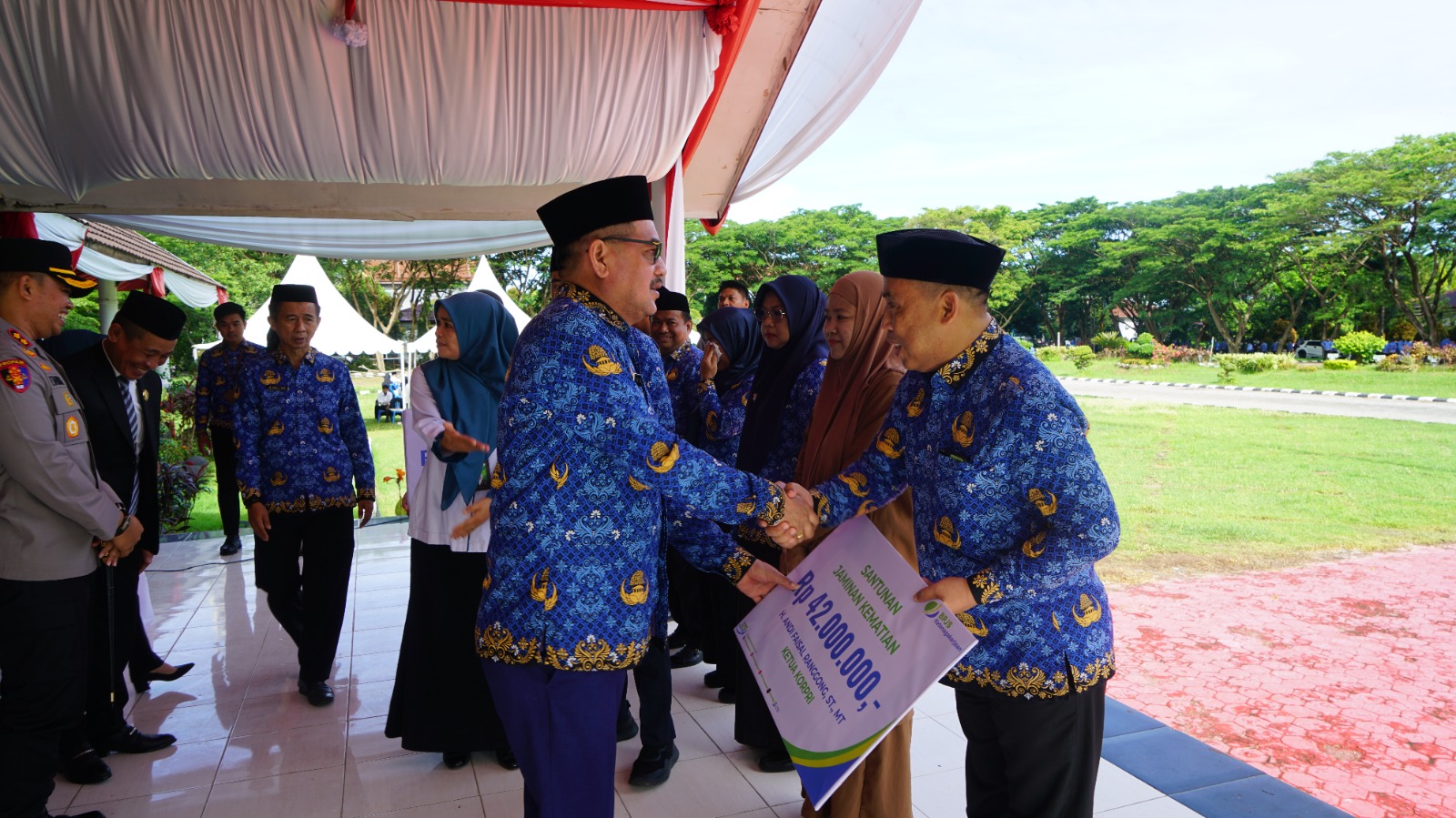 Pj Bupati Sidrap juga menyerahkan santunan jaminan kematian BPJamsostek kepada empat ahli waris anggota Korpri senilai Rp42 juta. Ke empatnya merupakan ahli waris dari mendiang Andi Faisal Ranggong, Sumarni, dr. Munzier Fajri Abd Malik, dan A. Astita.