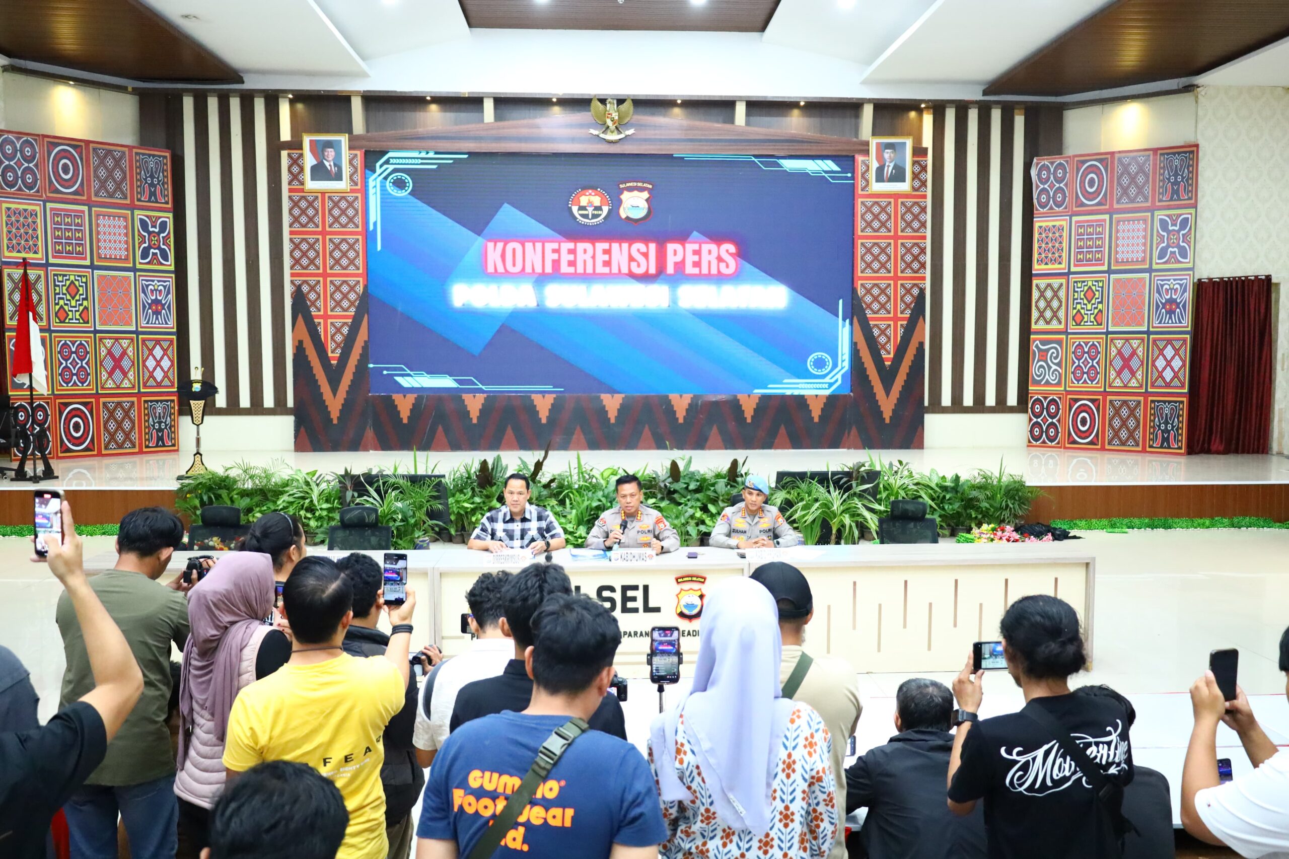 Direktorat Reserse Kriminal Khusus (Ditreskrimsus) Polda Sulawesi Selatan menggelar konferensi pers terkait perkembangan penanganan kasus penipuan online, Sabtu (26/4/2025), di Aula Mappaoddang, Mapolda Sulsel. Konferensi pers ini dipimpin oleh Dirkrimsus Polda Sulsel Kombes Pol Dedi Supriyadi, S.I.K., didampingi Kabid Humas Kombes Pol Didik Supranoto, S.I.K., M.H., dan Kabidpropam Kombes Pol Zulham Effendi, S.I.K., M.H.