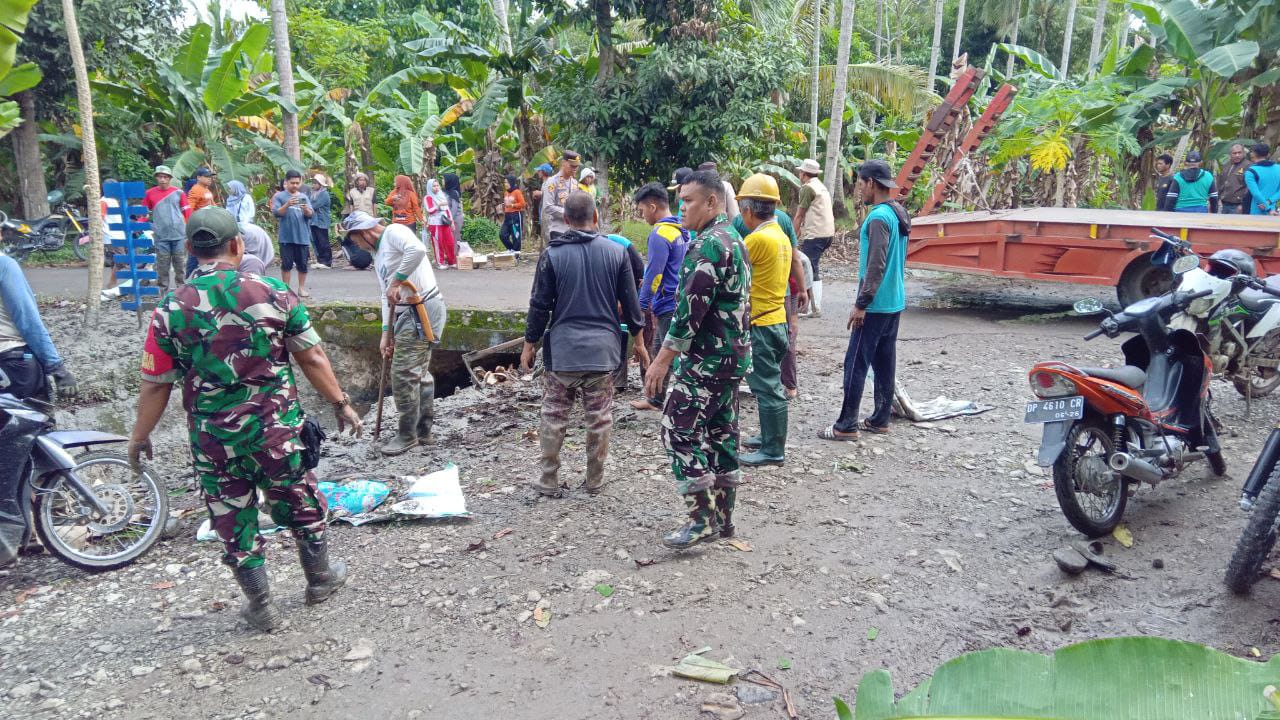 Sekitar 40 warga turun tangan bersama TNI, Polri, dan pemerintah setempat dalam aksi gotong royong yang penuh semangat.
