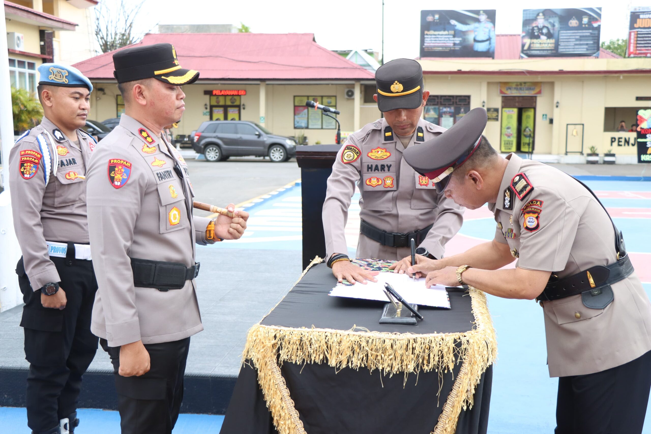SIDRAP – Kapolres Sidrap AKBP Dr. Fantry Taherong, S.H., S.I.K., M.H., memimpin langsung Upacara Serah Terima Jabatan (Sertijab) Waka Polres Sidrap dari KOMPOL Ahmad Rosma, S.H kepada KOMPOL Zulkarnain, S.K.M., M.A. serta melantik Kasat Lantas Polres Sidrap yang baru, AKP Abang Lahmuddin, S.H. Kegiatan berlangsung dengan khidmat di Halaman Polres Sidrap pada Rabu (26/3/2025).